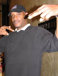 After spending some quality time with other convention goers in the registration line, we were finally allowed in the dealer room. It was simply amazing -- all the hottest stars in horror were on hand to meet and greet their fans with open arms. I had no idea where to turn to first. I met some of my favorites: Tony Todd (The Candyman), Lisa Wilcox (Nightmare on Elm Street 4,5), and the Lost Boys (Brook McCarter, Billy Wirth, Chance Michael Corbitt).