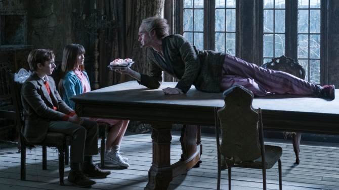 In the previews, Harris brings his sarcastic humor to the role of Count Olaf and all the other characters that he plays. Apparently, Count Olaf tries many disguises in order to steal the children's inheritance but these children are smart and they constantly call Olaf out on his disguises. While Harris appears to be an immature and comical figure, in contrast, the children are mature and well developed in their thought process.
